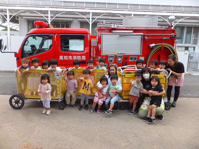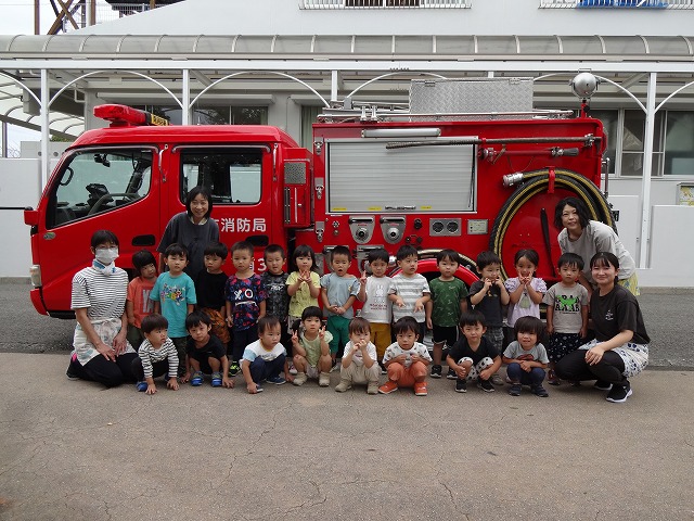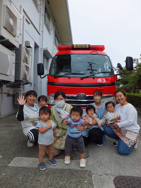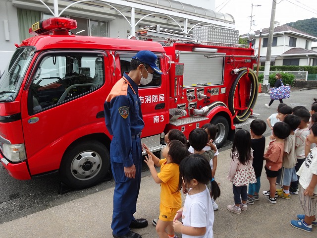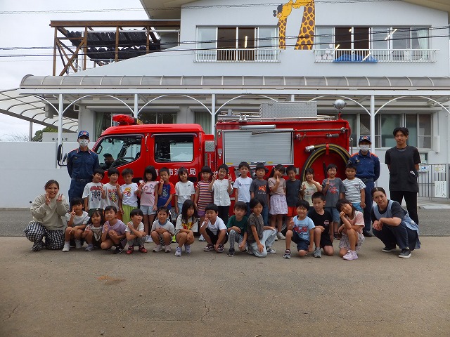 今日の消防署との連携の訓練は、子どもたちも職員も少し緊張もしつつ、いつもとはひと味違った訓練となりました。そして、消防車を間近で見れる特別な日でもあります。降園時も「消防車来ちょった~♪」とお家の方に報告する姿が見られていましたよ😊消防署の方に教えて頂いたことを頭に置いて、これからもしっかりと訓練を重ねていきたいと思います