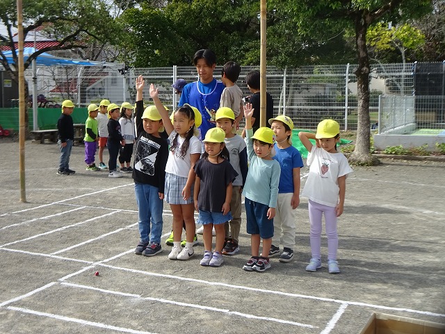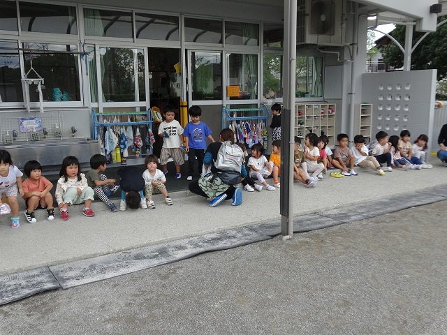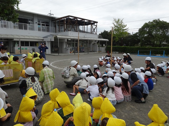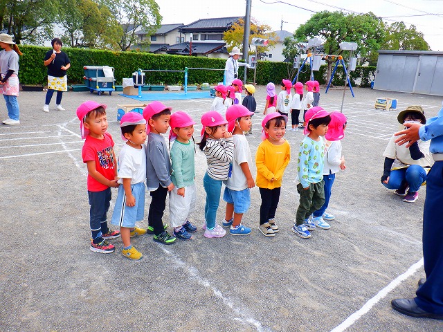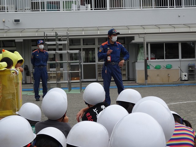 人数確認…全員無事に避難できました✨園長先生のお話の後、消防士さんから訓練についてお話がありました