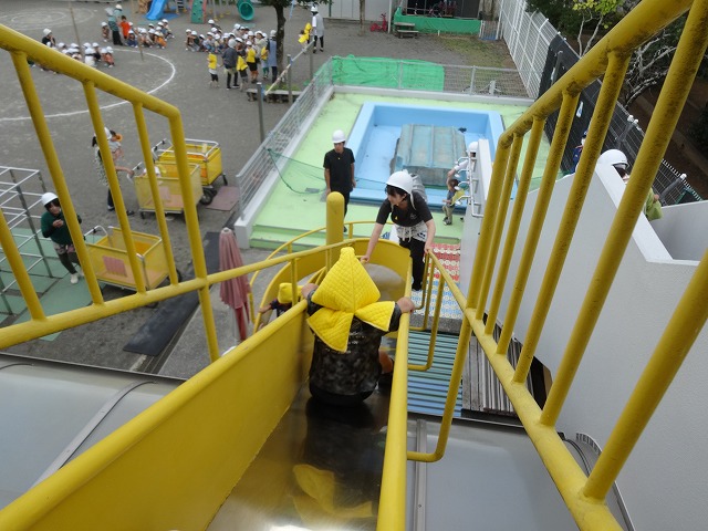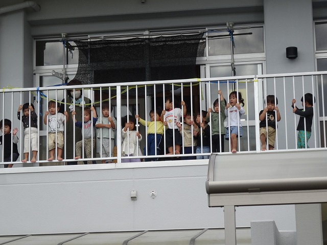 「楽しそうなことしているなぁ♪」というようにたんぽぽ組さんが2階から見ていました😊