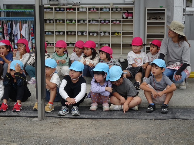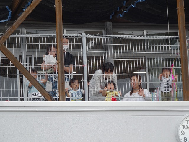 誕生会を終えて、テラスから幼児組さんの運動会ごっこを見ました😊