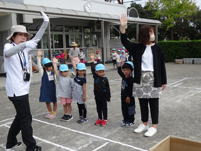 たんぽぽ組さんが出発した後、みにちゅーりっぷ組さんもレッツゴー!