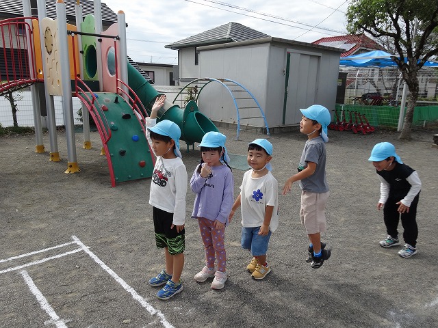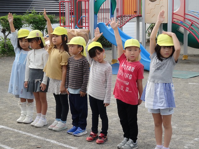 ①とまる、②左右を見る、③まつ…の体操をしました。