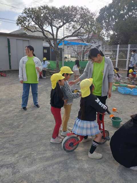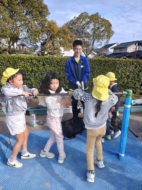 植え替えが終わると、一緒に遊びたい子どもたちが中学生を誘い始めました。