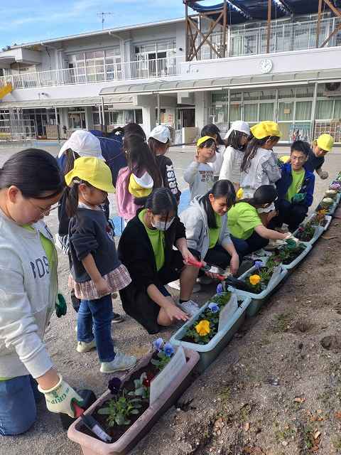 横浜中学校生徒会の皆さん、お花を植え替えて下さりありがとうございました。子どもたちと一緒に水やりをしながら大切に育てます。来年もよろしくお願いします😊