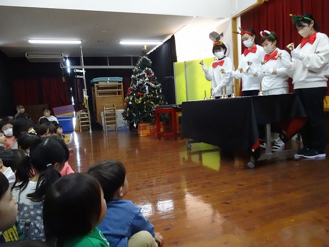 続いては、保育者によるハンドベル演奏「きよしこの夜」「ジングルベル」です