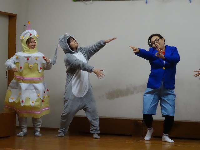 次の出し物を準備する間、音楽が流れました。子どもたちは「あっ!✨チェンソーマンやー」と大歓声があがり、体を揺らして踊ったり友だちと顔を見合わせたりと大騒ぎでした😊