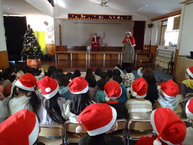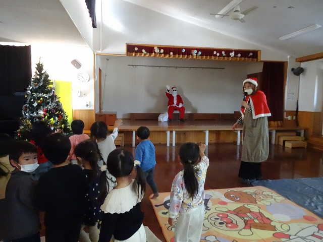 いよいよサンタさん登場!「あっ!サンタさんや~っ✨」「サンタさ~ん💕」と熱いまなざしで一気に湧き上がる子どもたちです。