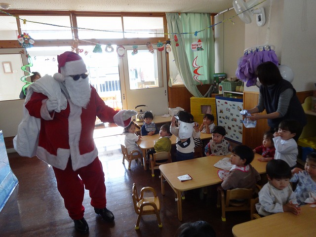 サングラス姿のサンタさんは、子どもたちにプレゼントを持って来てくれました🎁良かったね😊
