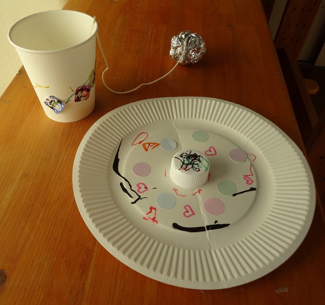 お父さんやお母さんと協力して、けん玉とコマが可愛く出来上がりました。