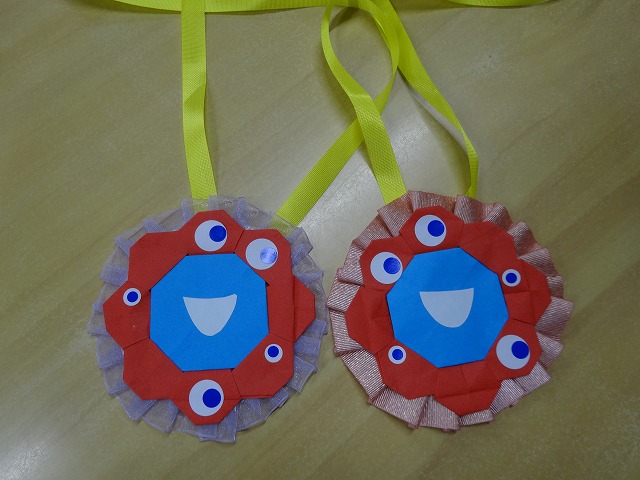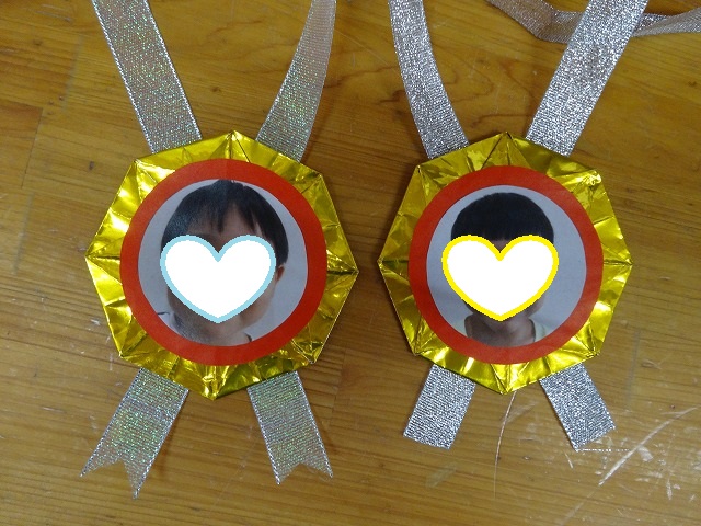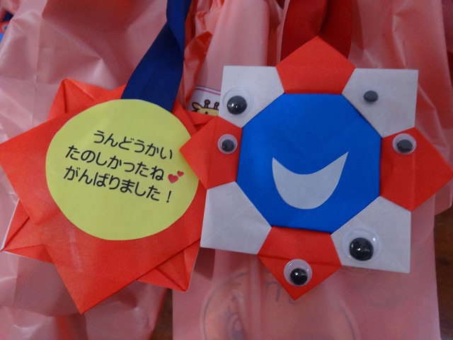 お土産と担任手づくりのメダルを渡しました