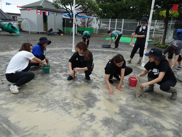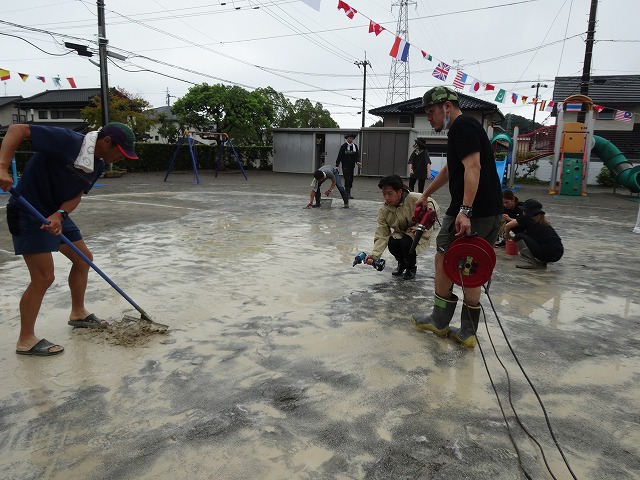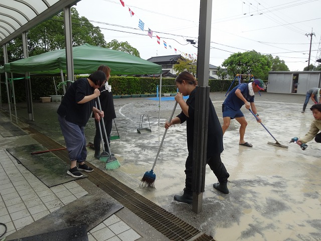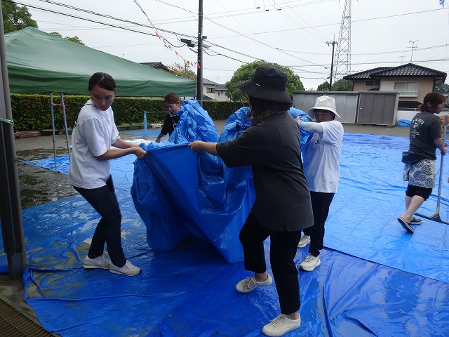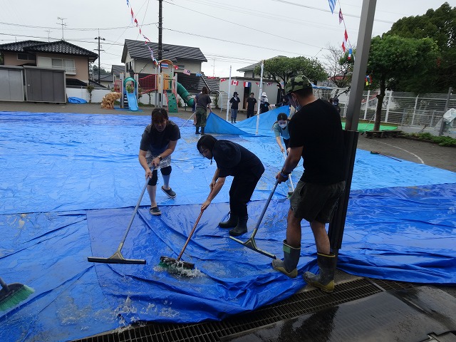 雨水を取り除き、水はけの悪いところには砂を撒いたり、ブルーシートでカバーしながら、準備が整いました😊