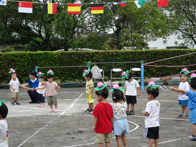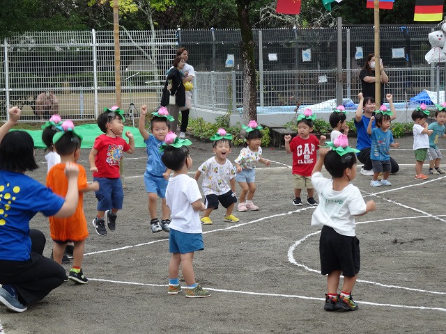 頭にお花を付けて「はながっぱ」になって踊りました🌸飛び跳ねるのが楽しそうです♪