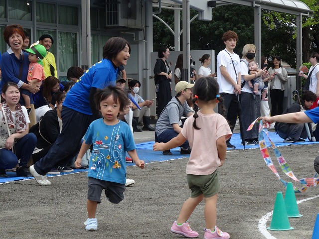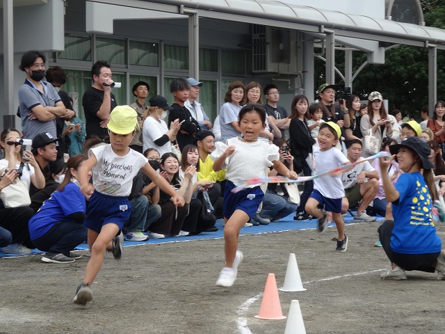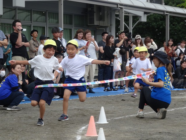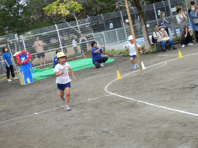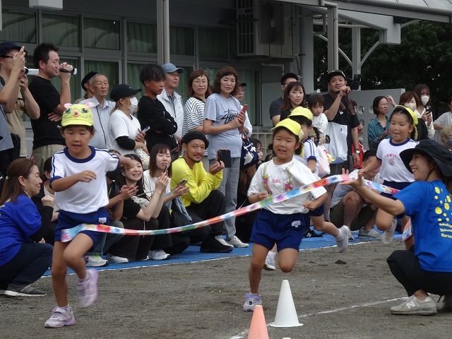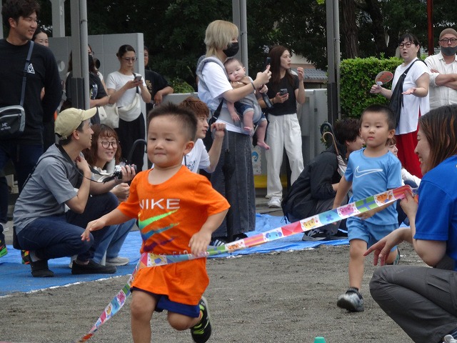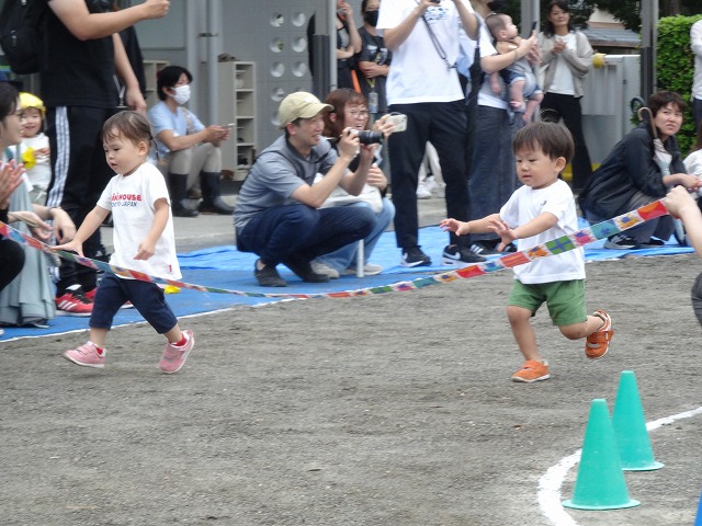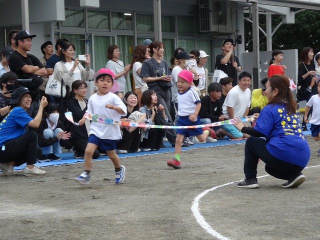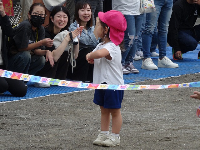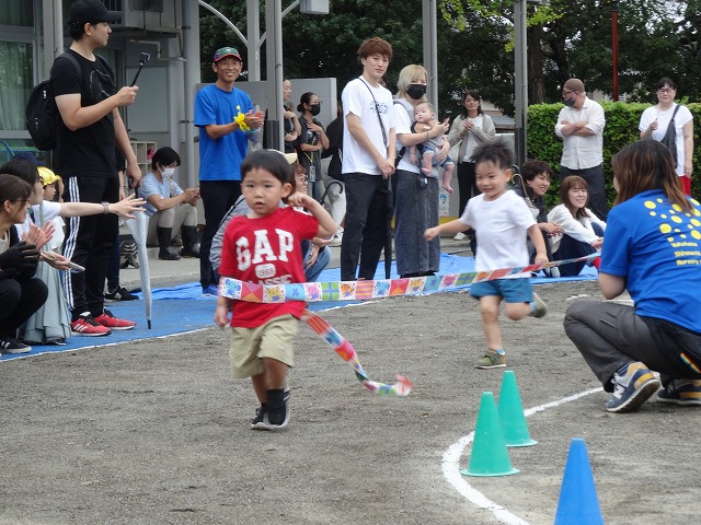 ひまわり組さんになると走るスピードが一段とアップ!一生懸命に走り、凄い勢いでゴールテープを切っていました