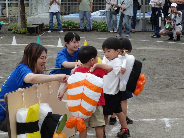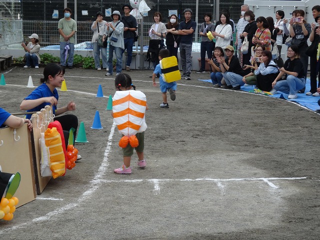 お好みのお寿司をチョイスして、背負ったら、走ってゴール!お寿司を一生懸命に背負おうとする姿が可愛かったです💛