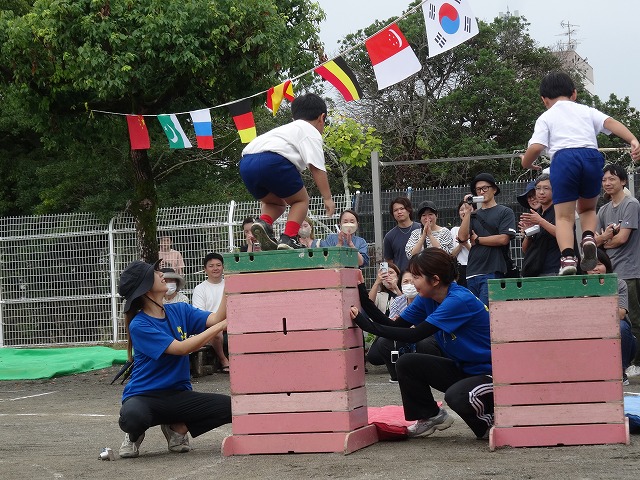 跳び箱を跳ぶと「わ~っ」と歓声が上がったり、跳び越えられなくても、その挑戦と頑張りに大きな拍手が送られていました