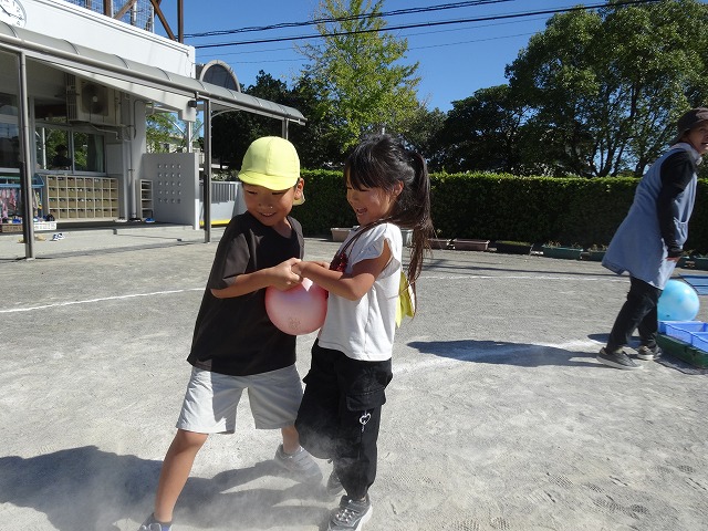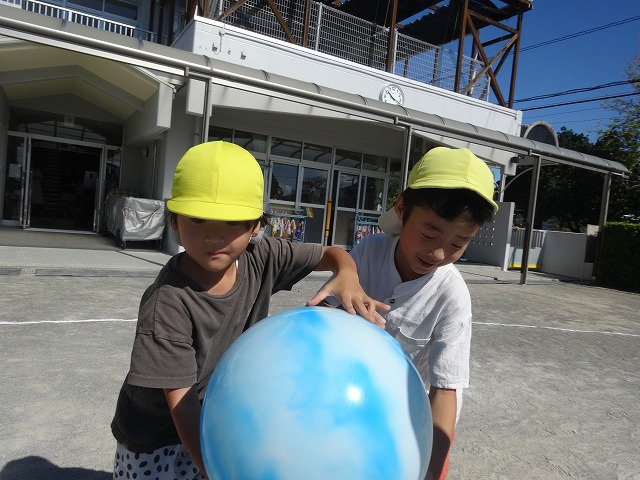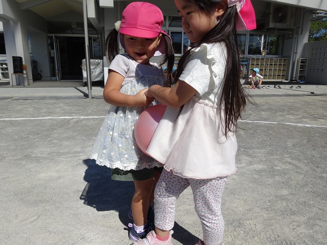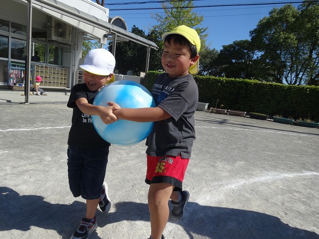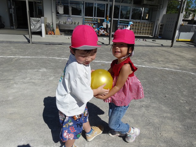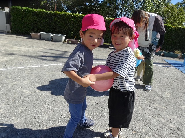 ボールが落ちないように息を合わせながら、そーっとそーっと…