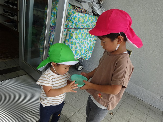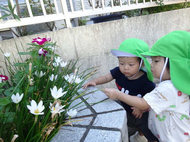 登園してきた子どもたちの賑やかなこえが聞こえ始めました。