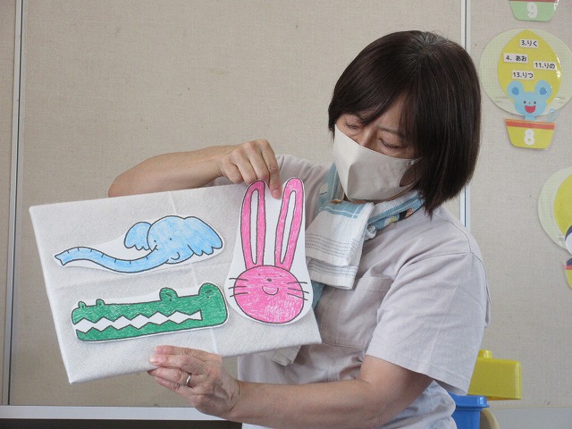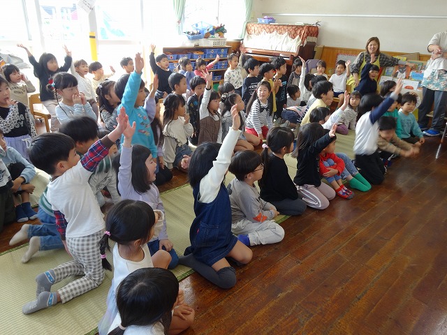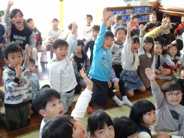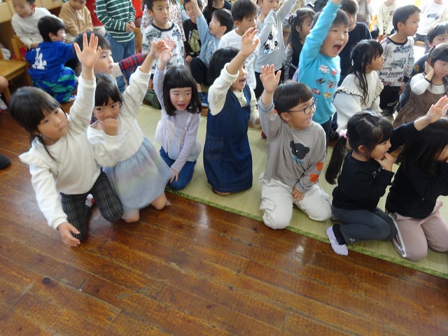 担任が一人ひとり名前を呼ぶと、「は~い」と手をあげてお返事できました😊