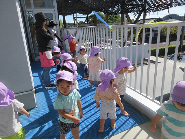 頭にお花を付けて「はながっぱ」になって踊りました🌸飛び跳ねるのが楽しそうです♪