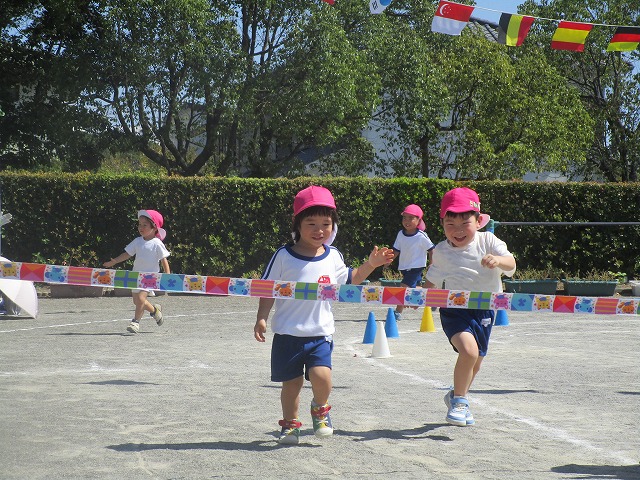 ひまわり組さんになると走るスピードが一段とアップ!一生懸命に走り、凄い勢いでゴールテープを切っていました