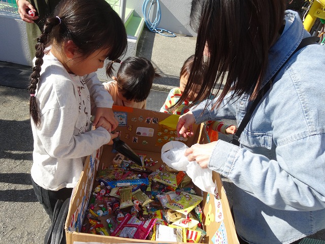 すみれ組さんは、「トリックオアトリート!お菓子をくれないといたずらしちゃうぞ!」と言うと、担任が手作りキャンディをくれました🍬
