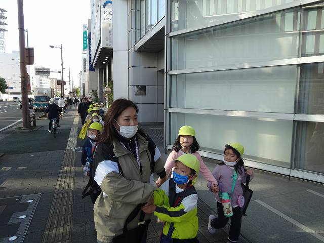 たんぽぽ組さんが出発した後、みにちゅーりっぷ組さんもレッツゴー!
