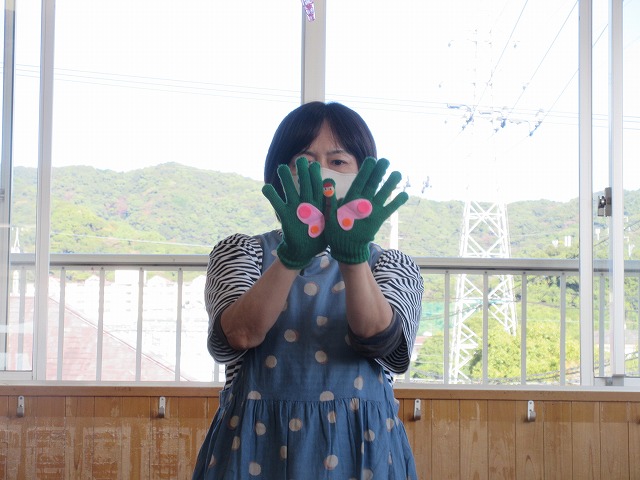 青、赤、黄、緑の手袋を付けて、指差しポーズも可愛く踊っていました